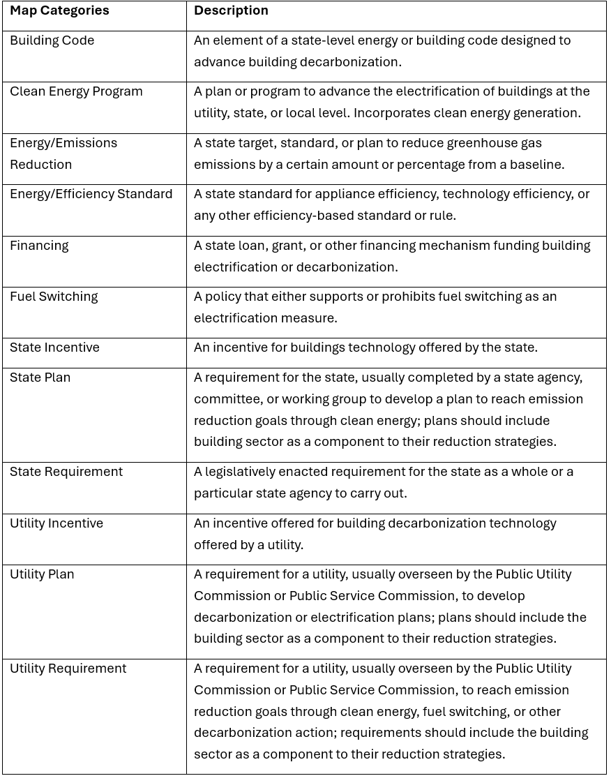 Today, the Spotlight States dashboard is undergoing an update of its policy categories and subcategories, to create more granularity in users’ filtering and increased policy specificity. These new categories are detailed in Table 1. They are described as map categories given their presentation on the dashboard on a physical map of the United States.