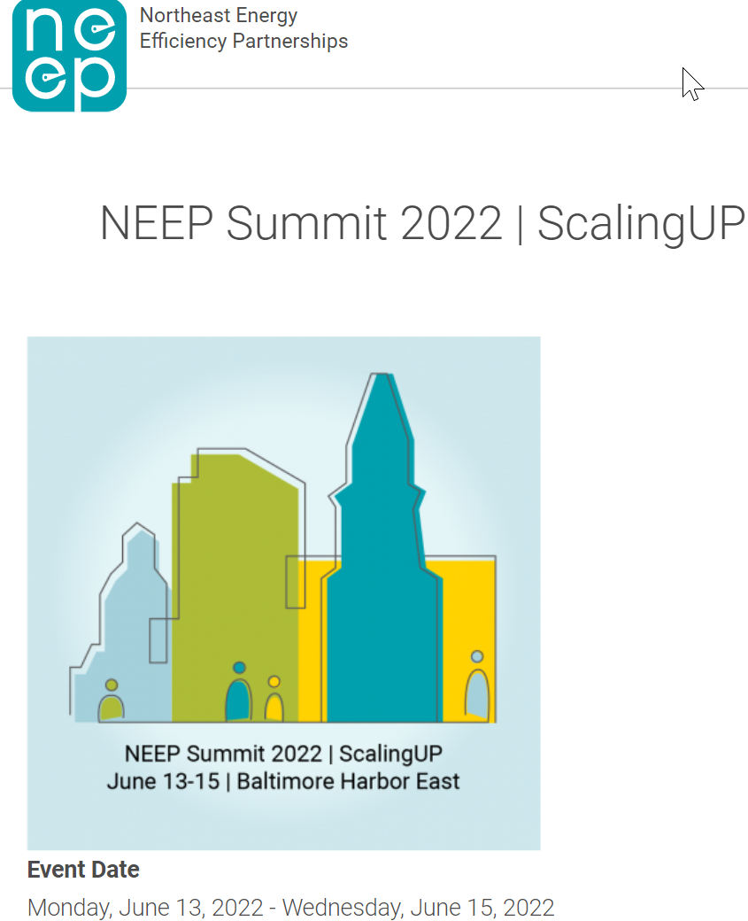 Join us at NEEP Summit 2022: ScalingUP at the Baltimore Waterfront in the city’s Harbor East where we will focus on getting to scale with case studies, pathways, and tangible solutions in a collaborative, interactive [...]
