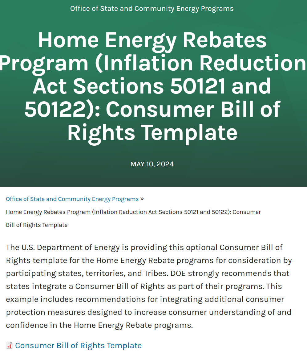 Home Energy Rebates Program (Inflation Reduction Act Sections 50121 and 50122): Consumer Bill of Rights Template
